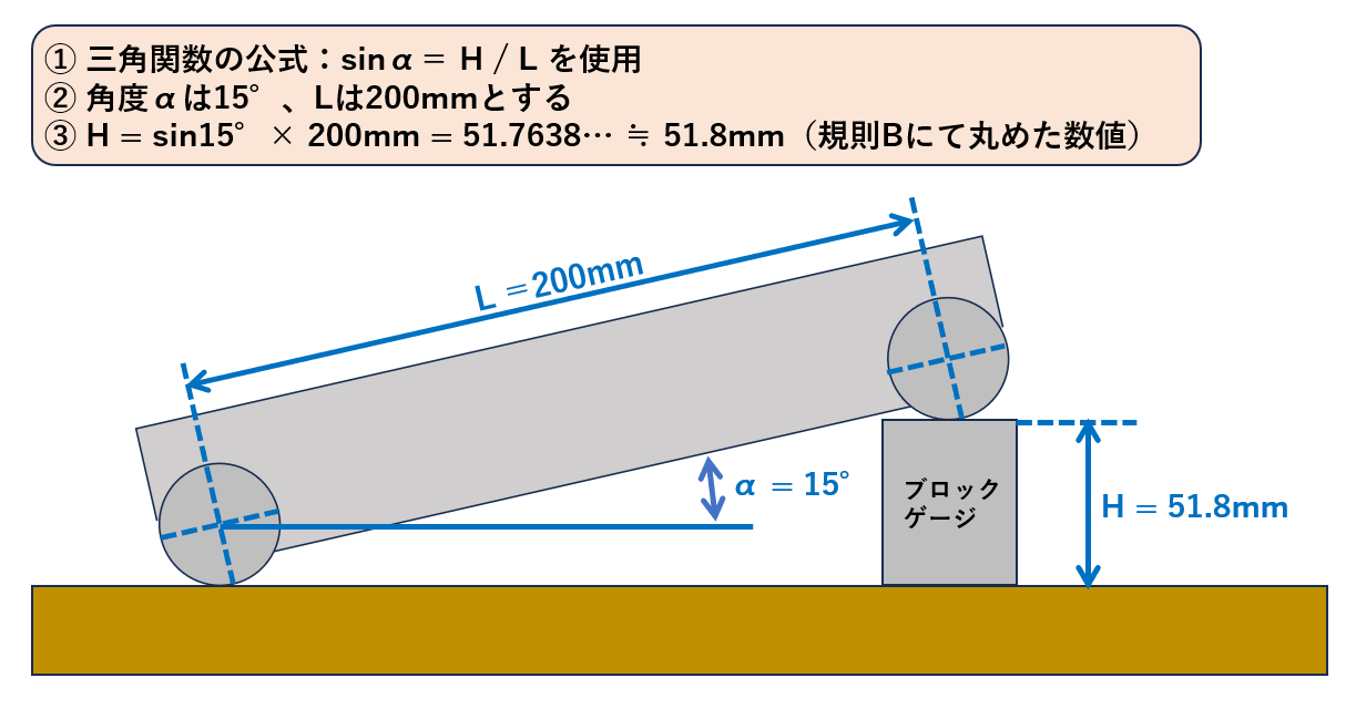• 30° や 45° 等の任意の角度は「 ブロックゲージ 」という長さの基準器と「 サインバー 」という平面度、平行度や長さなどが規定された器具を使用します。
