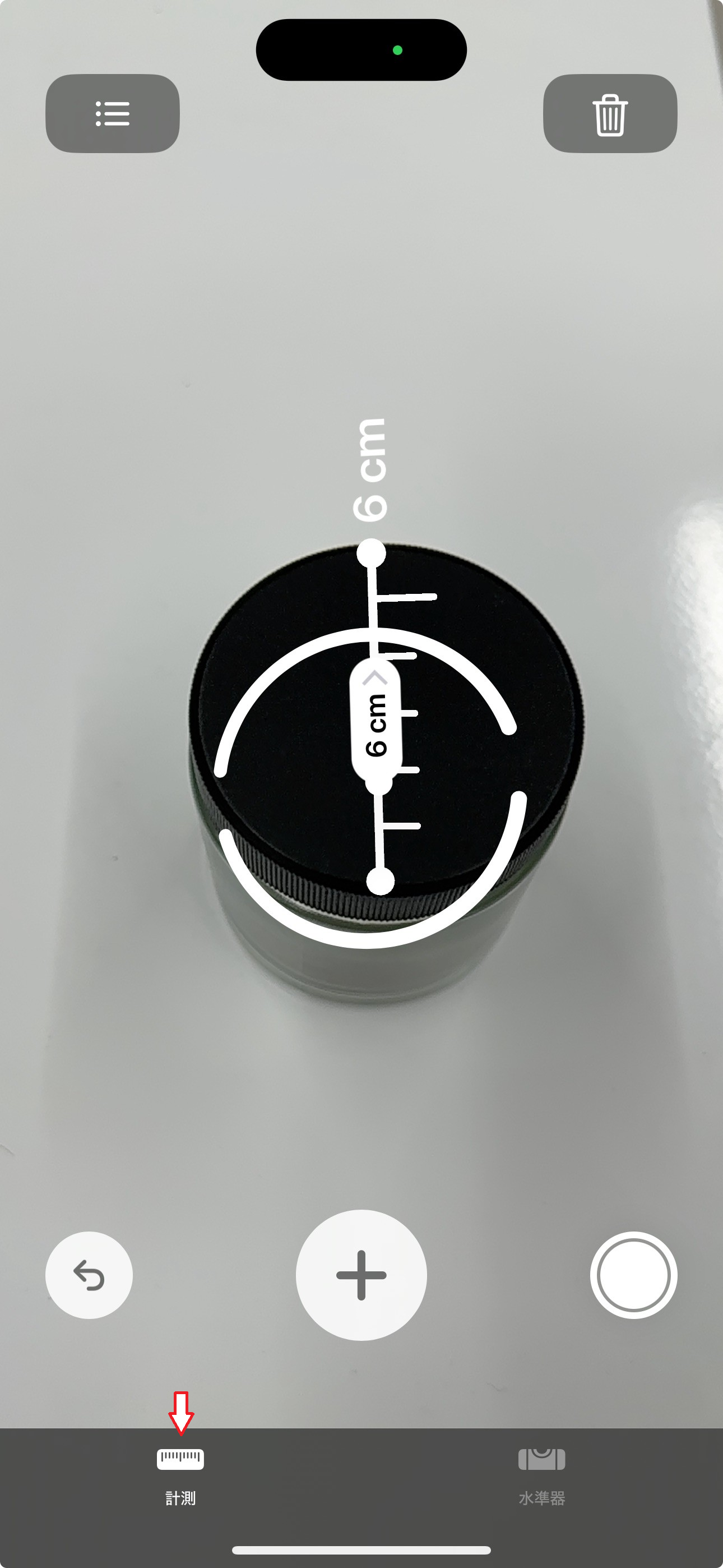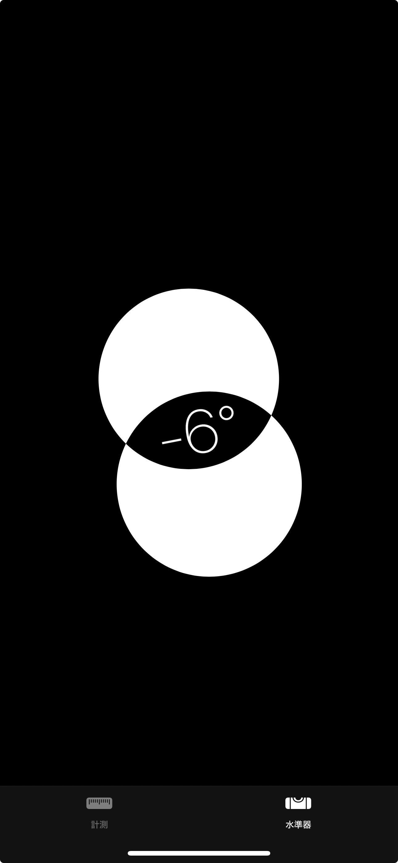 • なお、私のスマートフォン(iPhone)の計測アプリには「 計測(長さ) 」と「 水準器(角度) 」の2つの機能があり、切り替えて測定できるようになっています。