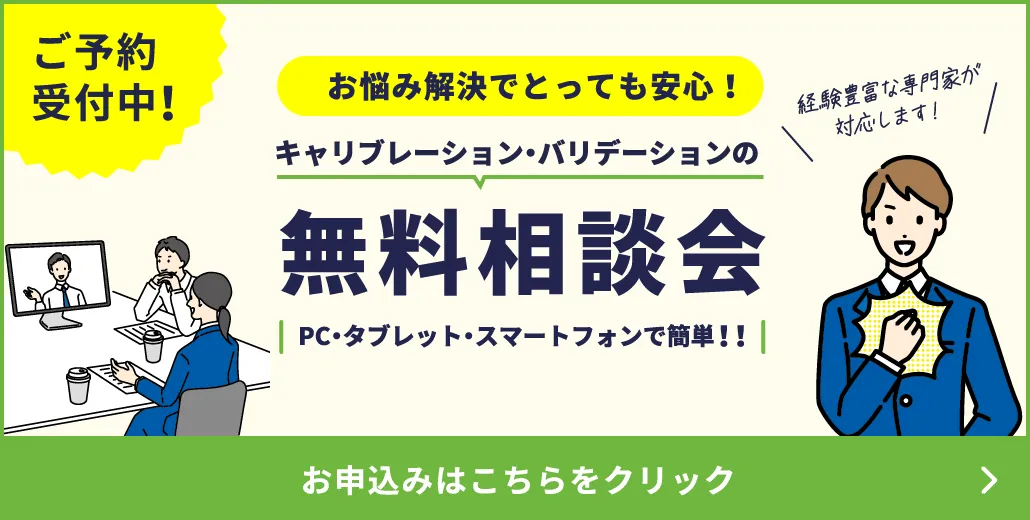 皆様のお申し込みをお待ちしております。 - キャリブレーション・バリデーション(適格性評価)について「無料オンライン相談会」からご相談していただくこともできます。