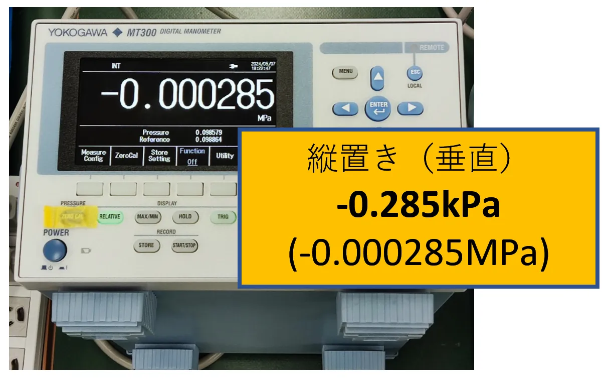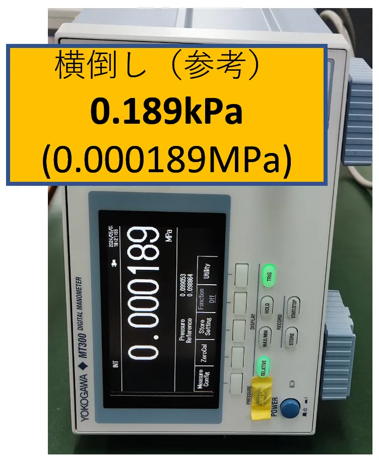 - 横置き(水平)を基準としたとき、垂直に置いたとき(縦置き)に差異が発生、参考に横倒しにしても差異が発生