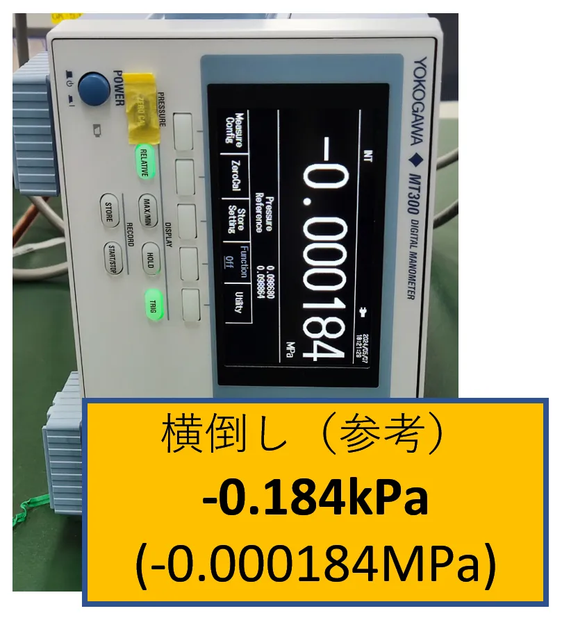 | 計測器(圧力計)の置き方 | 圧力値(kPa) |
