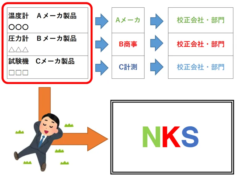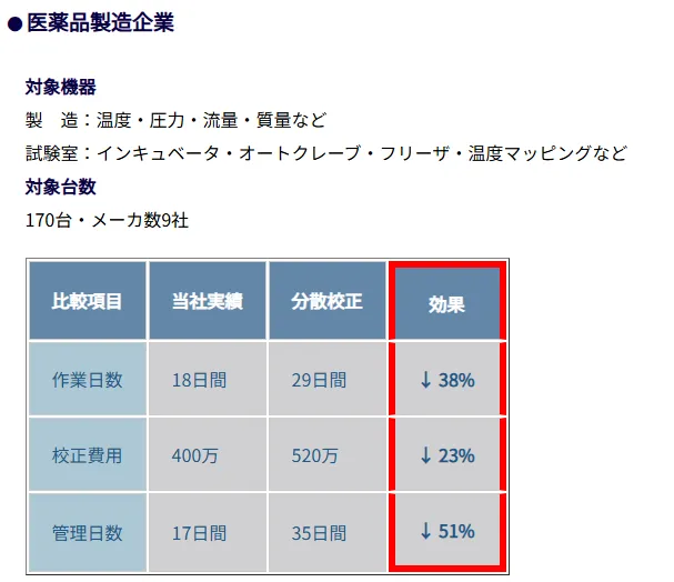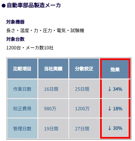 - 発注先を1社にすることで、「校正費用・作業日数・管理日数」の削減効果が見込まれます。