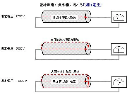 • 絶縁抵抗を測定するときに、何ボルトの電圧で測ればいいのだろう?