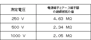 • 製品の仕様書には絶縁抵抗に関する測定電圧と抵抗値が記載されている場合がありますので、事前に仕様を確認する事が大切です。