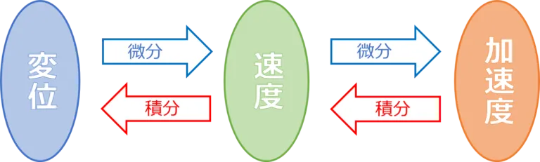 - 変位・速度・加速度の3つの単位にはそれぞれ使用用途が異なることがわかりました。 では、それらの関係性はどうでしょうか。